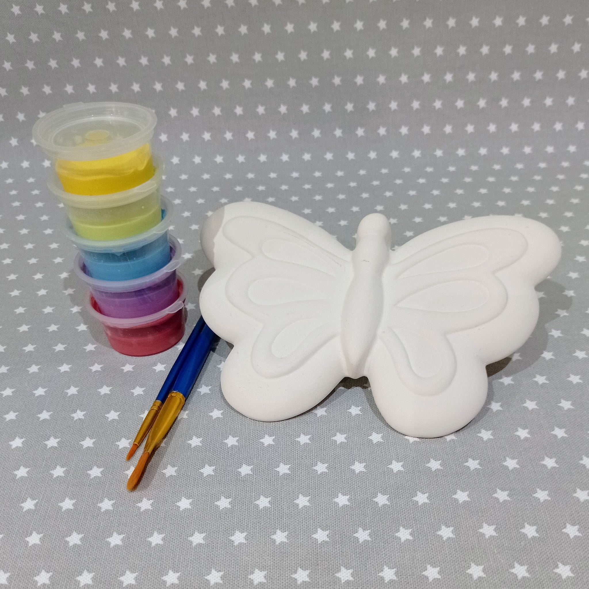 This unpainted bisque pottery item comes with 2 brushes and 5 underglaze colours of your choice.