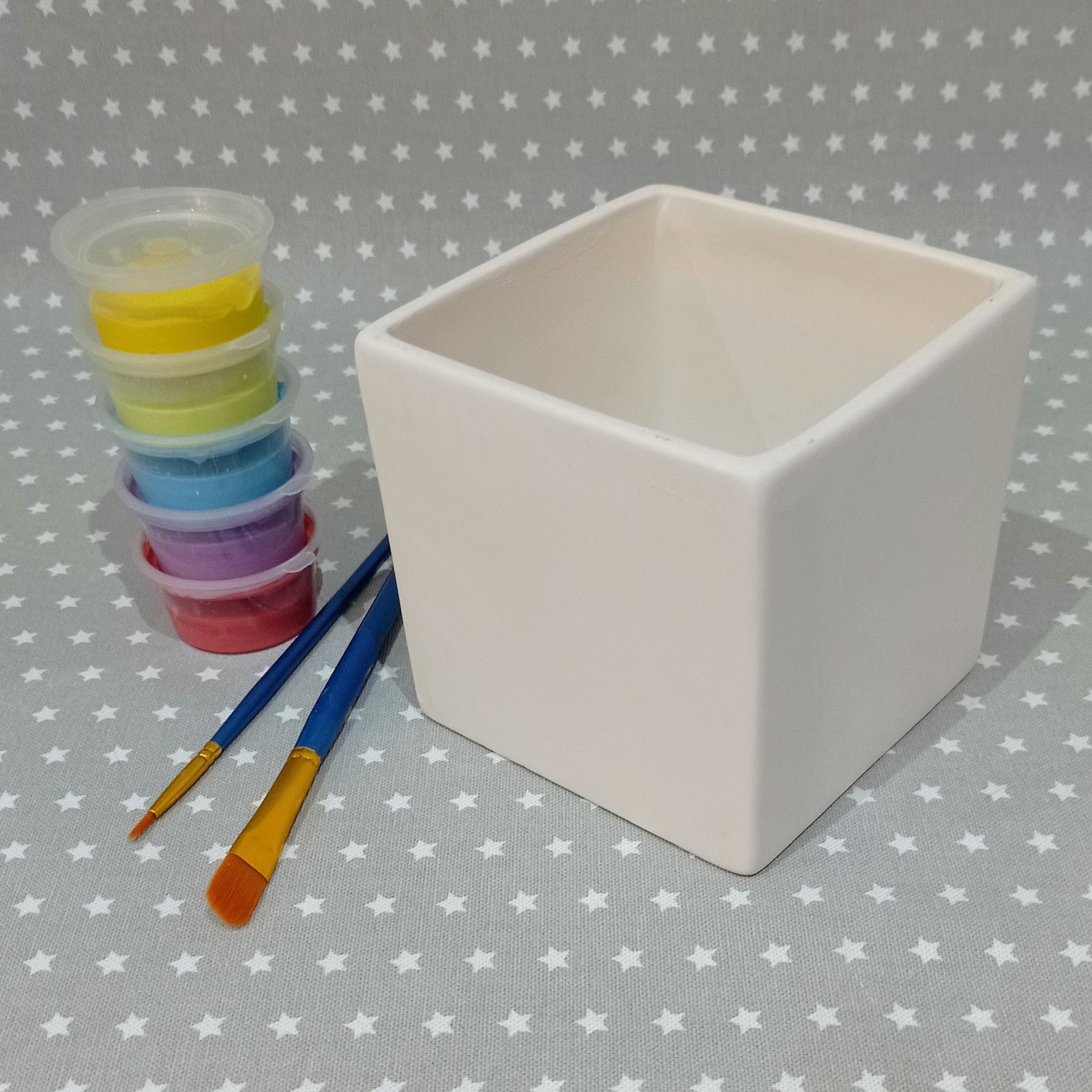 This unpainted bisque pottery item comes with 2 brushes and 5 underglaze colours of your choice.