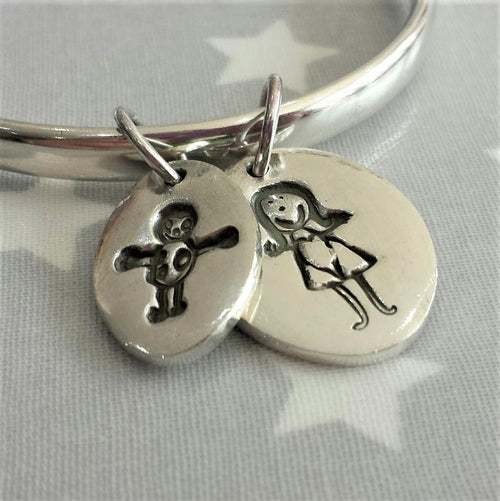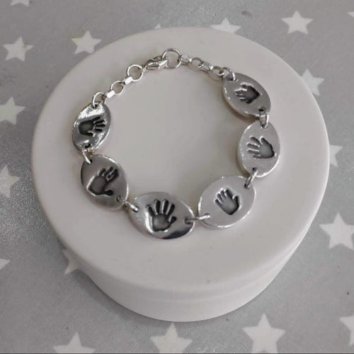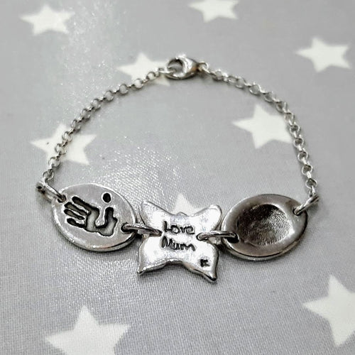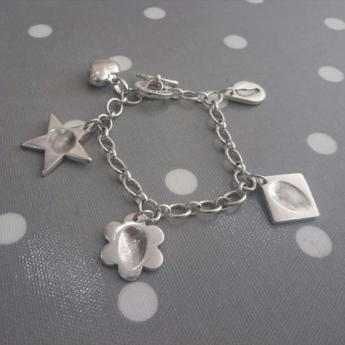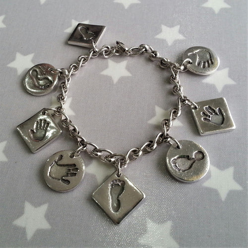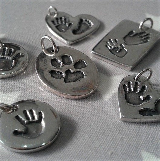 Bespoke and handcrafted, each piece is as individual as the unique impression it bears, capturing fingerprints, hand and footprints, paw prints and even children’s drawings or loved-one's writing in solid silver. All the charms and all the attachments such as chains, bracelets, bangles, and keyrings are sterling silver.
