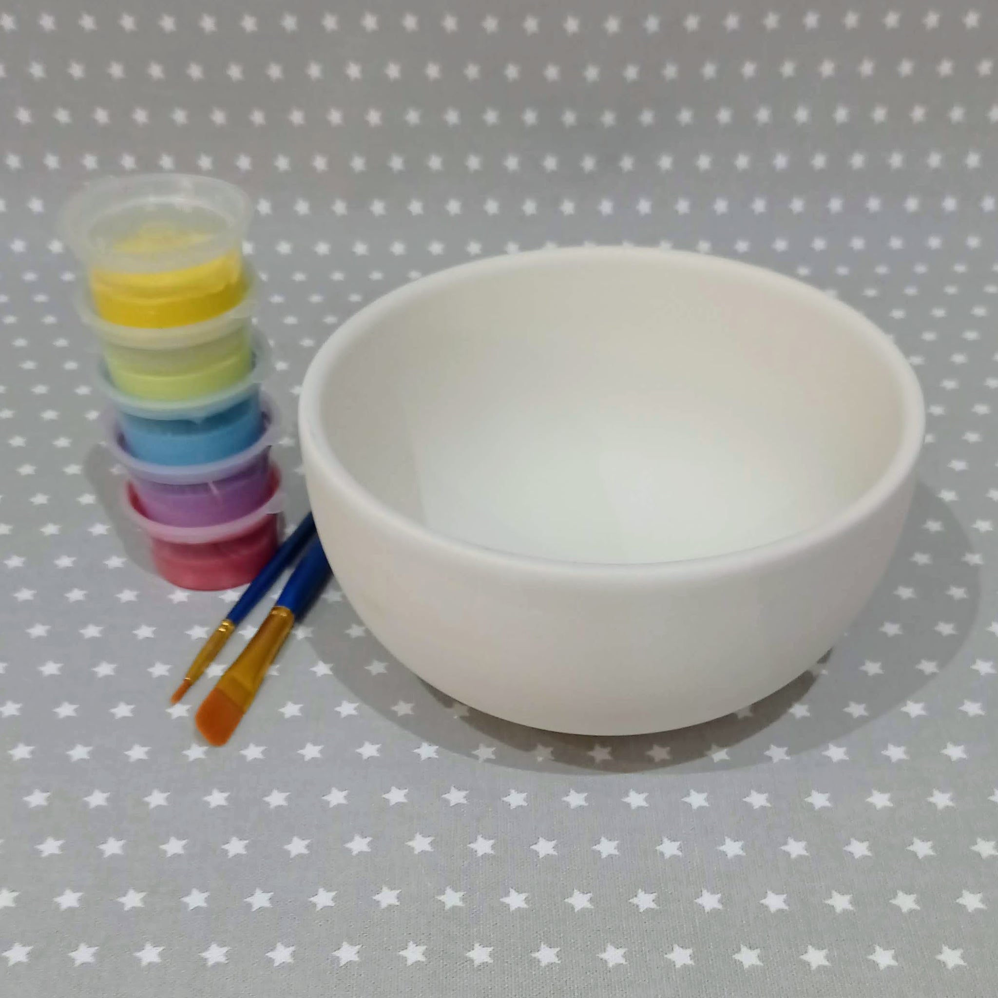 This unpainted bisque pottery item comes with 2 brushes and 5 underglaze colours of your choice.